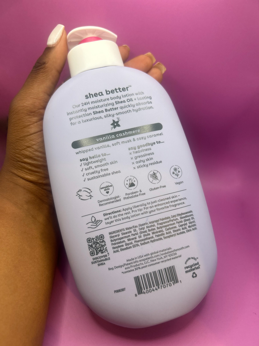 Pamper your skin daily with EOS Vanilla Cashmere and experience softness that feels as good as it smells.